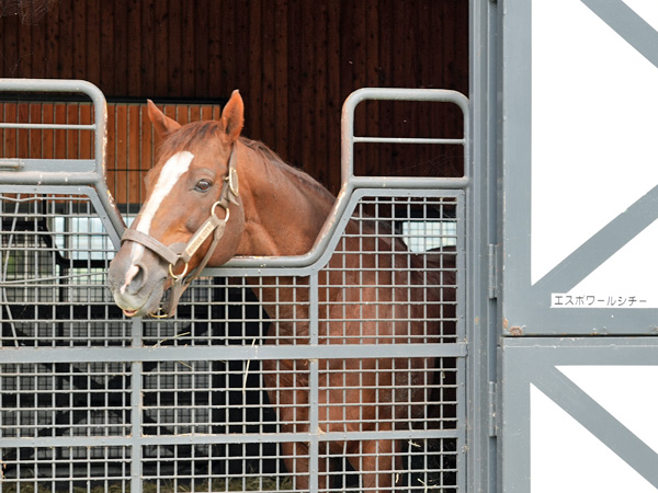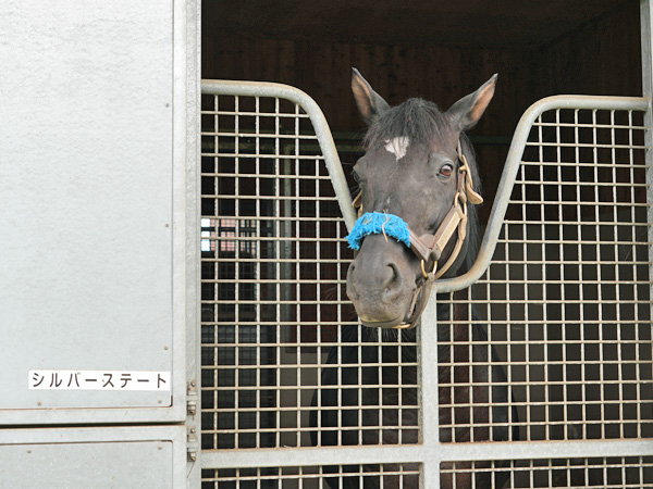 人気があるのはやはりG1ホースですが、中でもエスポワールシチー(2009年 JCダート、2010年 フェブラリーSなどG1 9勝)はやはり有名なので、多くの人が前で顔を出すのを待っていました。運よく顔を出すタイミングに出くわしたので、写真を撮ることができました。