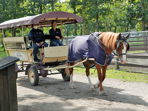 馬と触れ合えるテーマパークということで、ポニーショーや体験乗馬、馬車の乗車など馬にかかわるさまざまなアクティビティを楽しめるのですが、元競走馬と会うこともできます。種牡馬を引退したり、繁殖には携われなかったものの乗馬として第二の生活を送るいろいろな馬たちを、身近に見ることができるのも、ノーザンホースパークの魅力のひとつです。