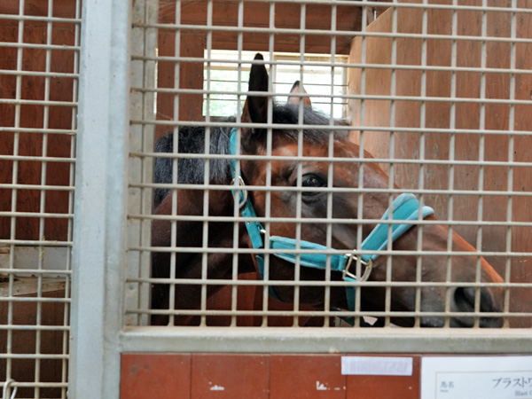 しかしキンシャサノキセキとブラストワンピースは残念ながら外に顔を出してくれず、厩舎内で網の向こうの写真しか撮れませんでした。