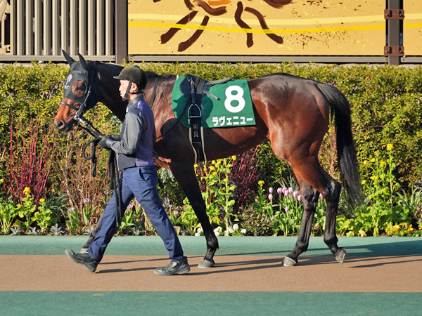 そんな中、2.8倍の1番人気に支持されたのは昨年11月の東京芝1800m新馬戦を5馬身差で圧勝したラヴェニュー(父ロードカナロア)でした。ホープフルSに登録して事前の評判は高かったものの熱発で回避。今回は仕切り直しの1戦でした。