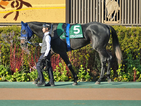 2番人気(3.7倍)はリアライズシリウス(父ポエティックフレア)。新潟2歳Sの強さと朝日杯FSでの負けの落差が大きく、それが2番人気にとどまった理由でしょう。ただし調教はこちらも良く、パドックも少し小脚を使う場面はありましたが、基本的には落ち着いていてトモの踏み込みも力強く、力が出せそうに見えました。